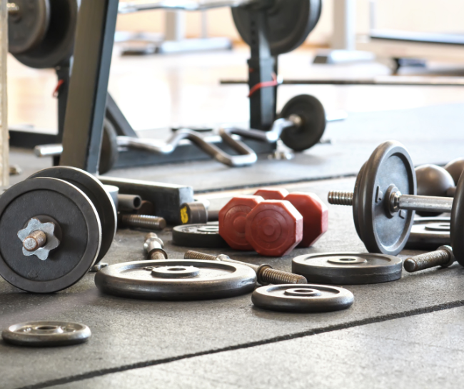 swiss balls, resistance bands, balance discs, weights, chin-up bars, weight machines, yoga blocks, yoga mat, dumbbells, push-up handles and gloves, gym equipment and etc
